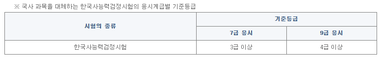 - 7급 응시자 → 한국사능력검정시험 3급 이상