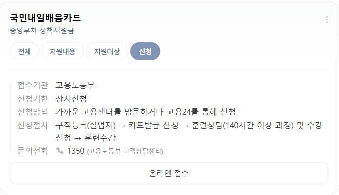 - 국민내일배움카드: 연 500만 원 한도(만 75세까지 확대, 2025년 기준)