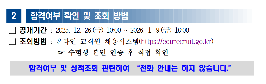 | 교직적성 심층면접 | 2026.1.21(수) | 일반 및 비교수교과 전체 | 해당 시험장 |