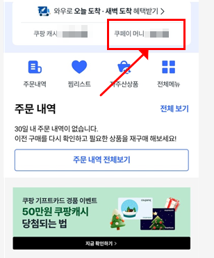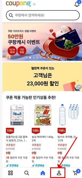 - 쿠팡 앱 실행 → [마이쿠팡] 클릭