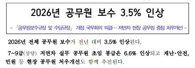 ✔ 2026 공무원 전체 봉급 인상률: 3.5%
