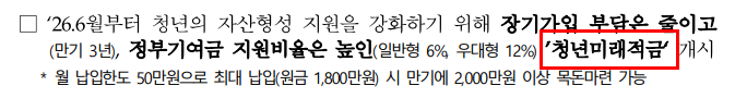 | 항목 | 청년미래적금 | 청년도약계좌 |