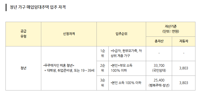 📌 청년 가구는 1~3순위로 구분되며, 수급자·차상위계층은 1순위