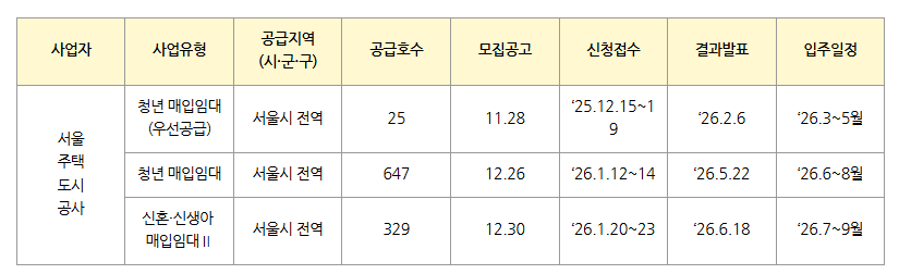- 서울지역 공급분: 서울주택도시공사 홈페이지